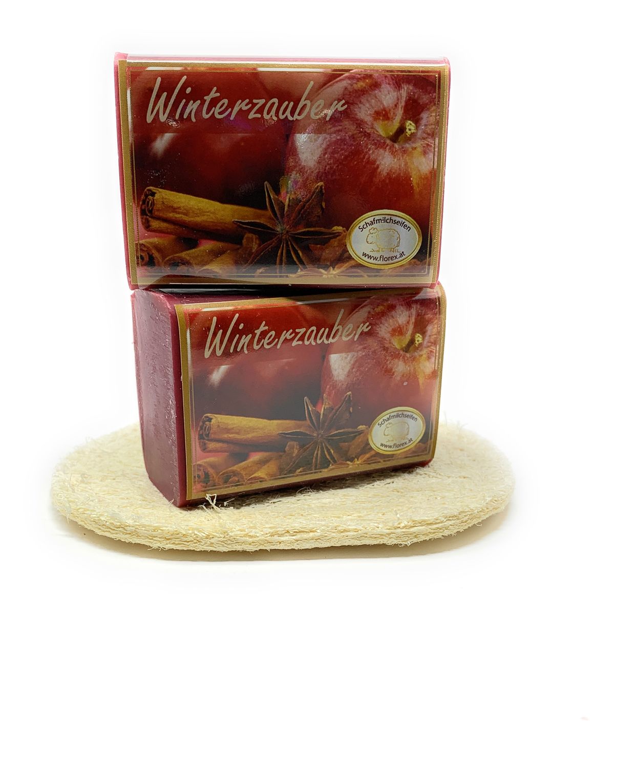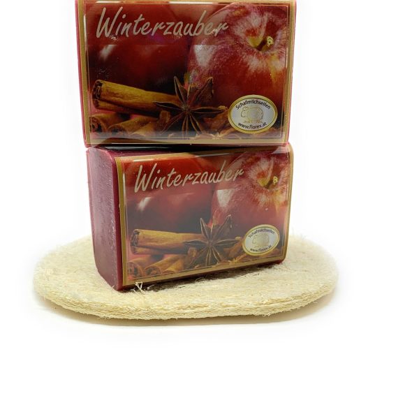 2 Stück Schafmilchseife Winterzauber + Luffa Seifenablage 200 g
