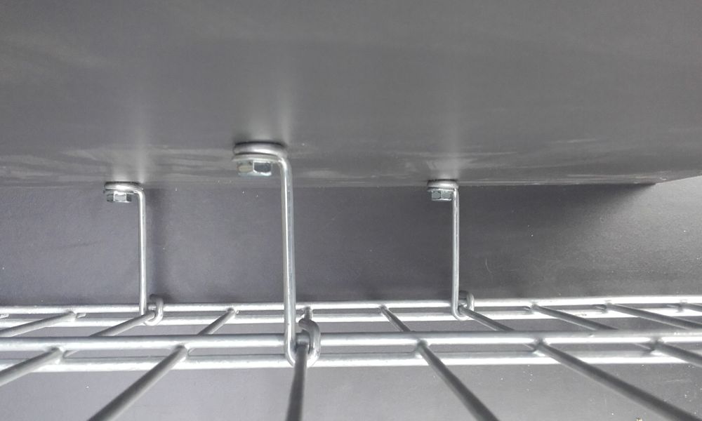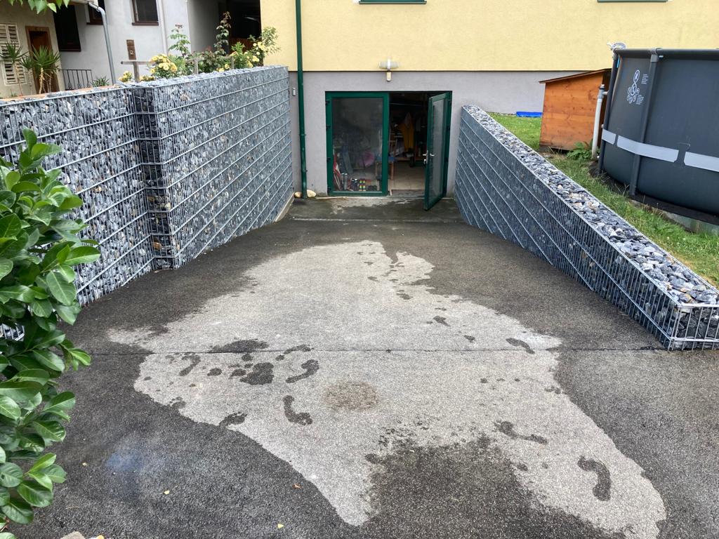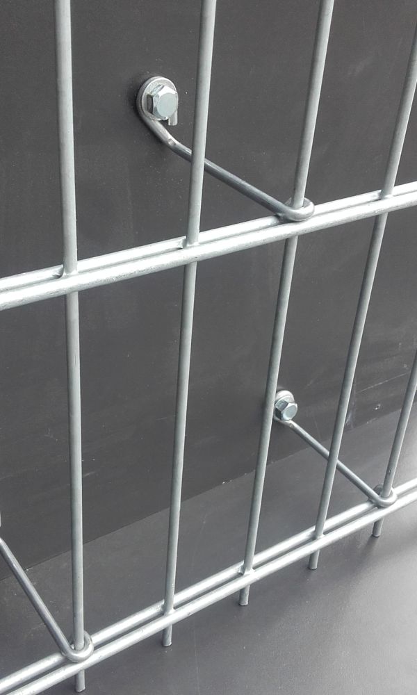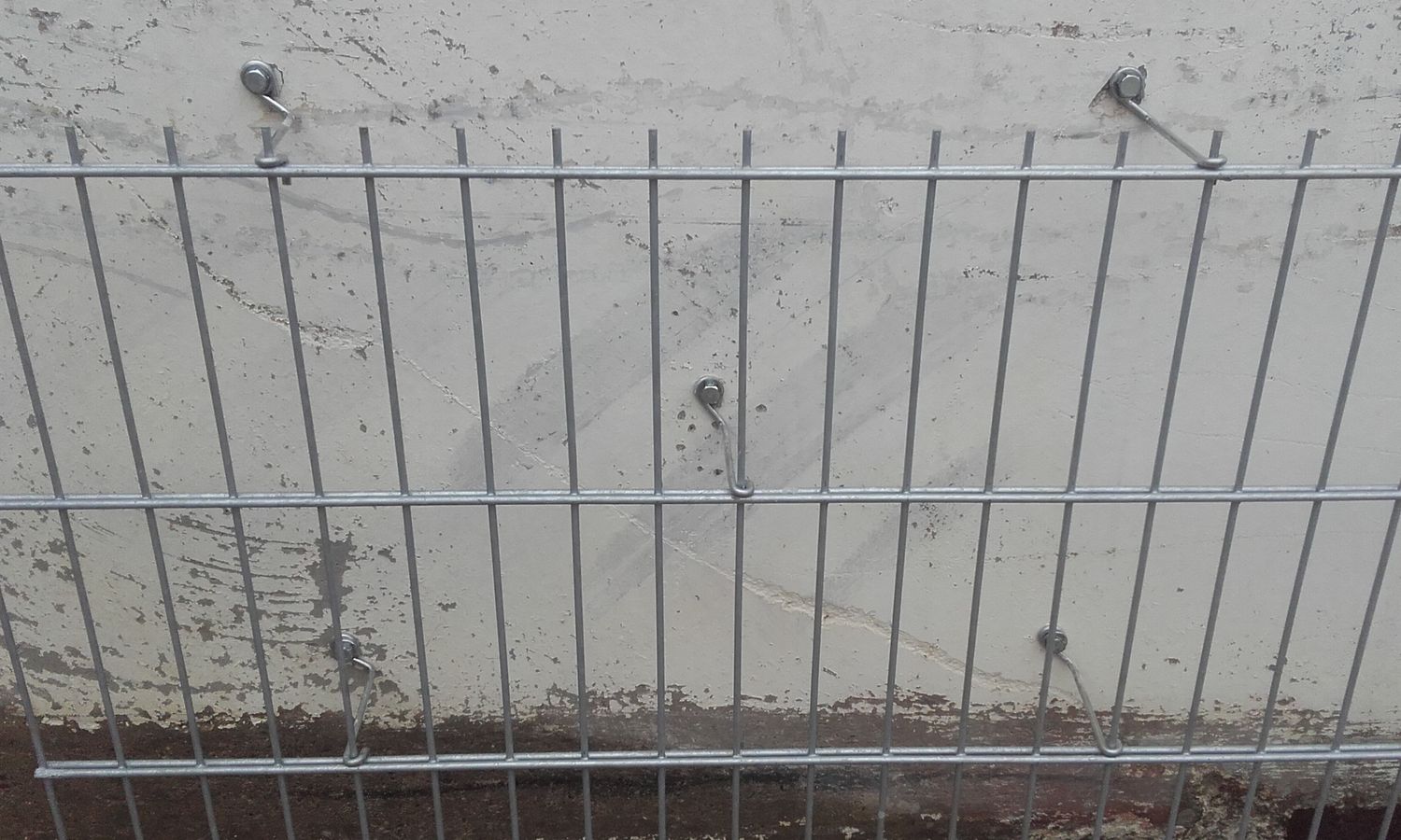 Diese Art der Befestigung eignet sich für Doppelstabgitter an einer Stützmauer. Unterschiedliche Längen der Wandverkleidungsabstandshalter ermöglichen ein Ausgleichen von vorhandenen unebenen Wandflächen.
