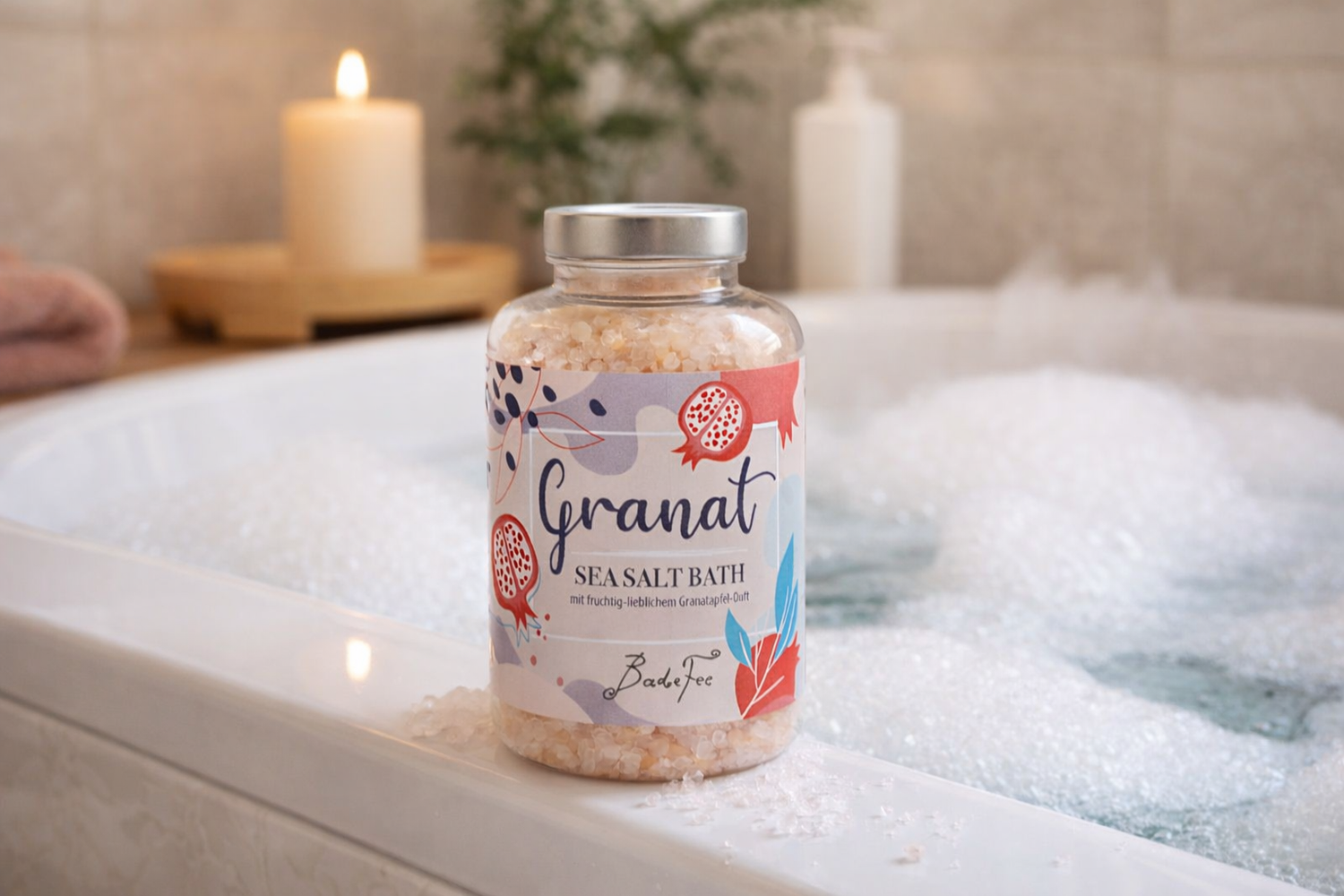 Badefee Badesalz Granat 500 g – Meersalzkristalle mit fruchtigem Granatapfelduft