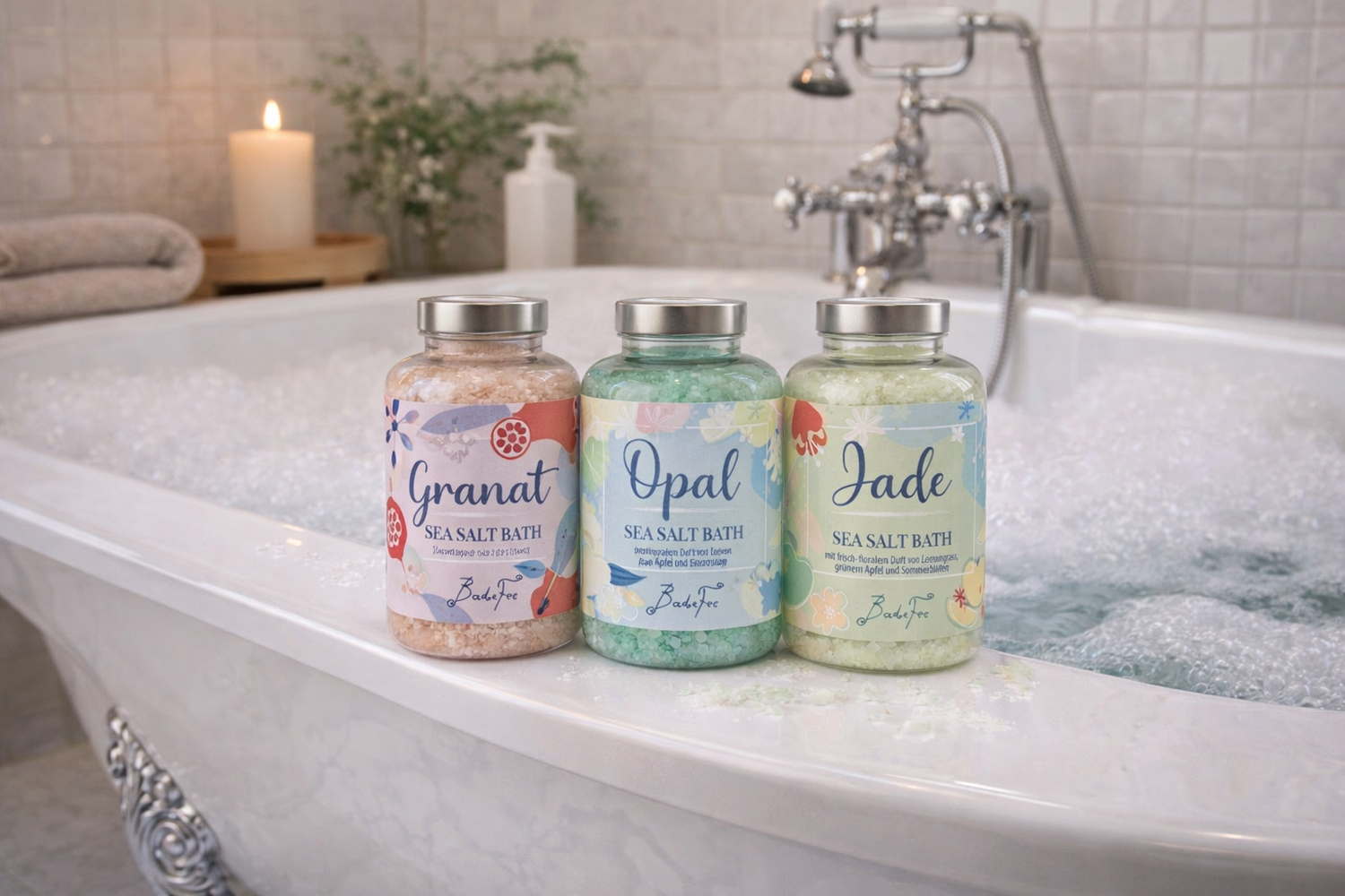 Schreiben Sie die erste Rezension für „Badefee Badesalz Jade 500 g – Meersalzkristalle mit grünem Apfel, Zitronengras & Sommerblüten“