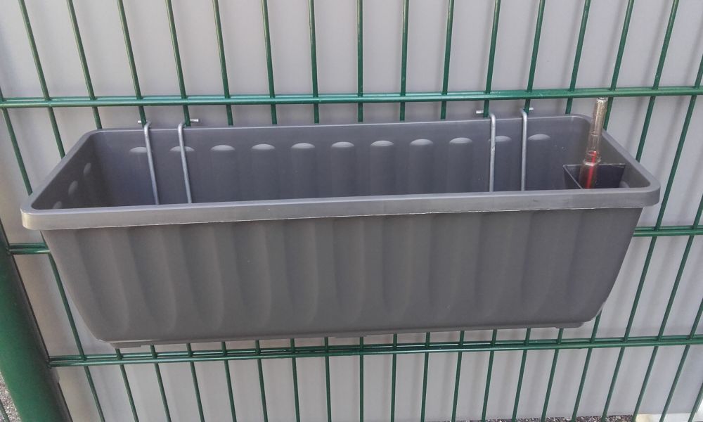 • Dieser Pflanzkastenhalter aus verzinkten 5 mm Stahldraht zum Befestigen von rechteckigen und quadratischen Pflanzkästen eignet sich zum Einhängen an Doppelstabgitterzäune 8/6/8 mm und 6/5/6mm. Wichtig: Die Wandstärke der Gefäße darf nicht mehr als 15 mm Wandstärke betragen!