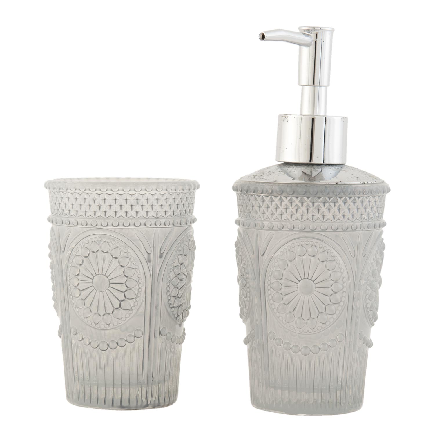 Clayre & Eef 2er Set Badezimmer Seifenspender Zahnbürstenhalter aus Glas-Keramik