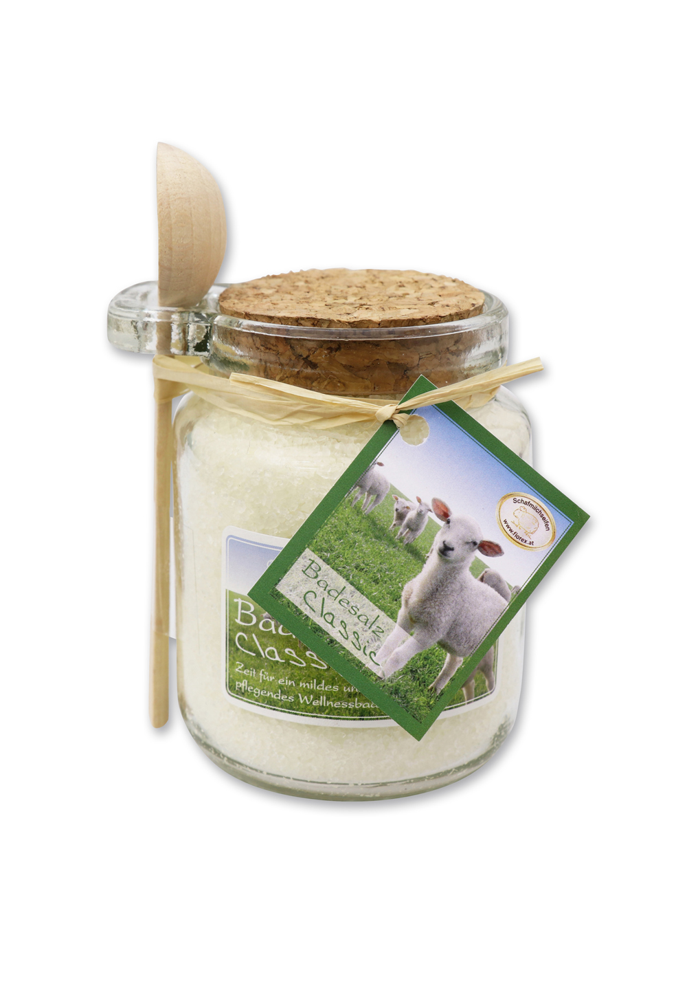 Florex Badesalz Badezusatz Schafmilch Classic Glas mit Holzlöffel 300 g