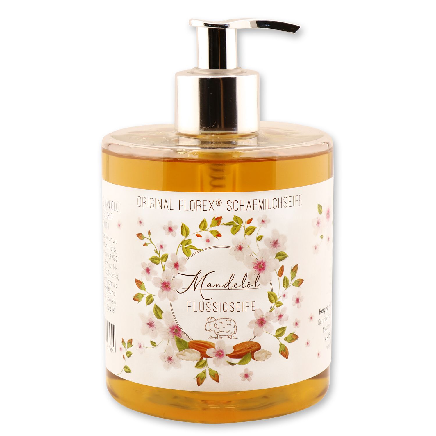 Florex Flüssigseife Mandel im Spender Lanolin biologische Schafmilch 500 ml