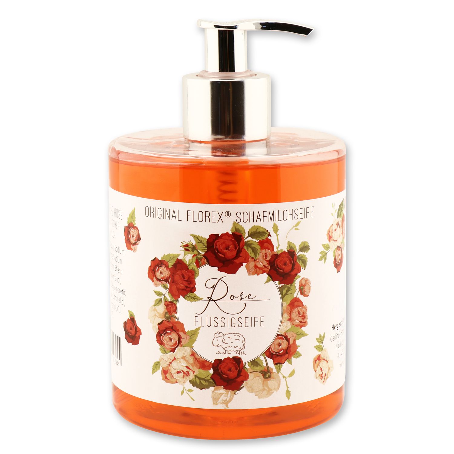 Florex Flüssigseife Rose im Spender Lanolin biologische Schafmilch 500 ml