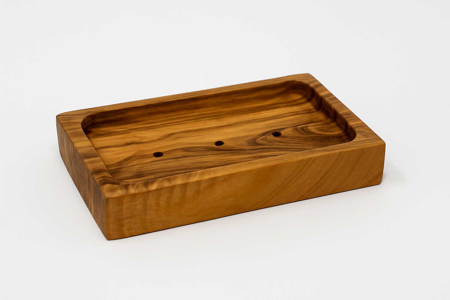 Handgefertigte Seifenschale aus Olivenholz eckig mit Ablauflöcher 12×8 cm