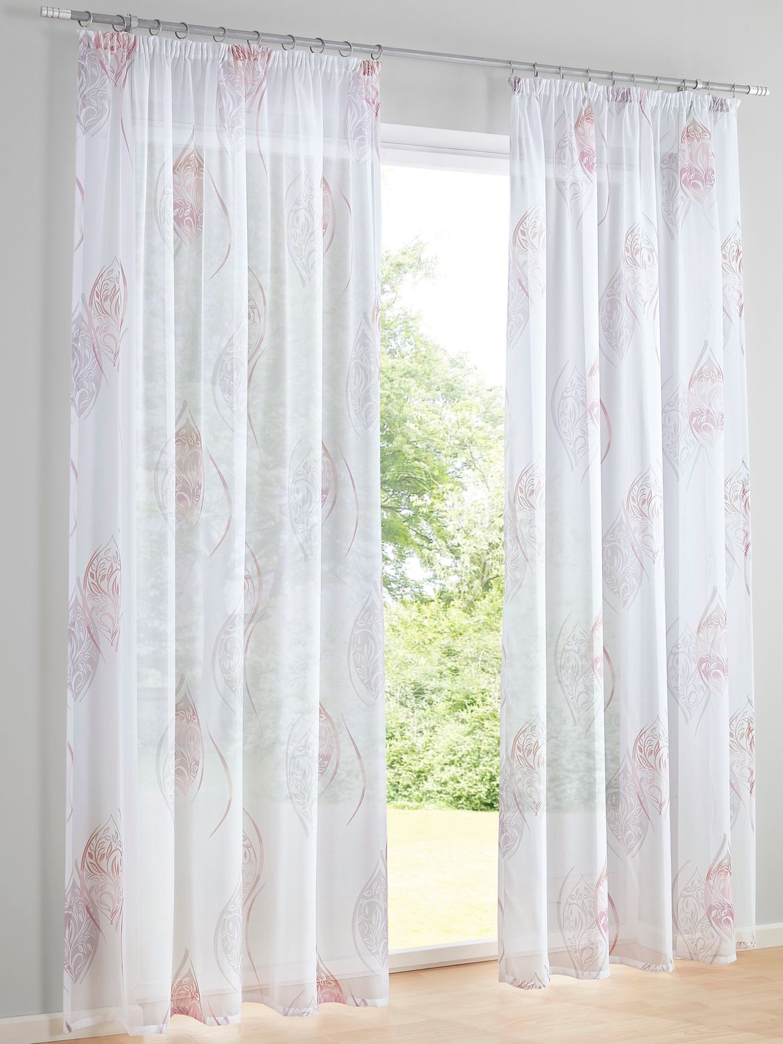 • Heine Home Dekostore in weiß. Edel bedruckt in zarten Farben. Vorhang ist mit Ösen.