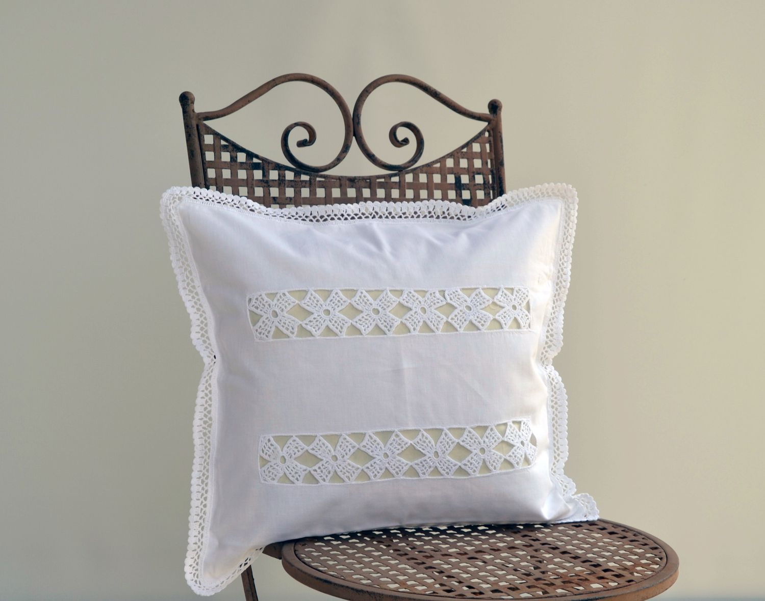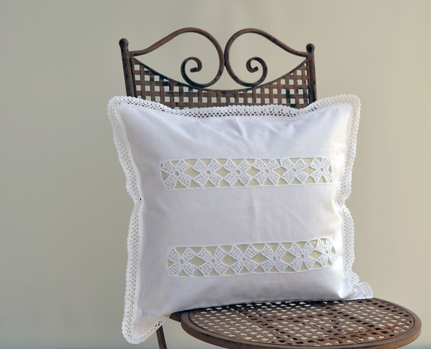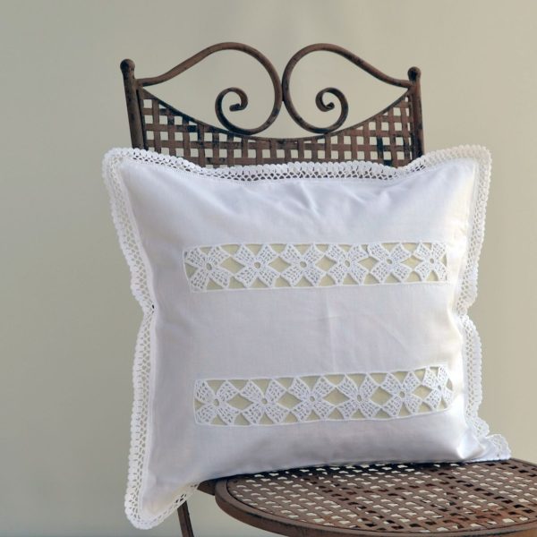• Kissenhülle romantisch mit echter Häkel Spitze Handarbeit im Shabby Landhaus Look von Hossner.