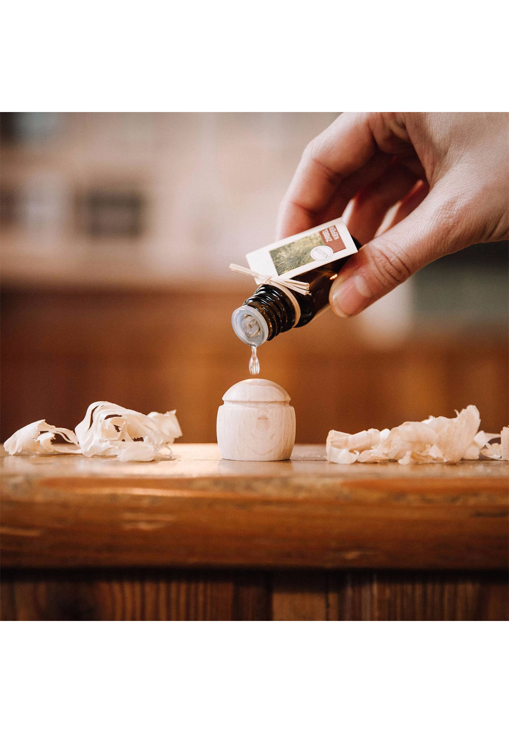 • Anwendung: Verschluss öffnen, 2–3 Tropfen des Öls auf den Holz-Dufträger geben, wieder verschließen und den Duft entfalten lassen