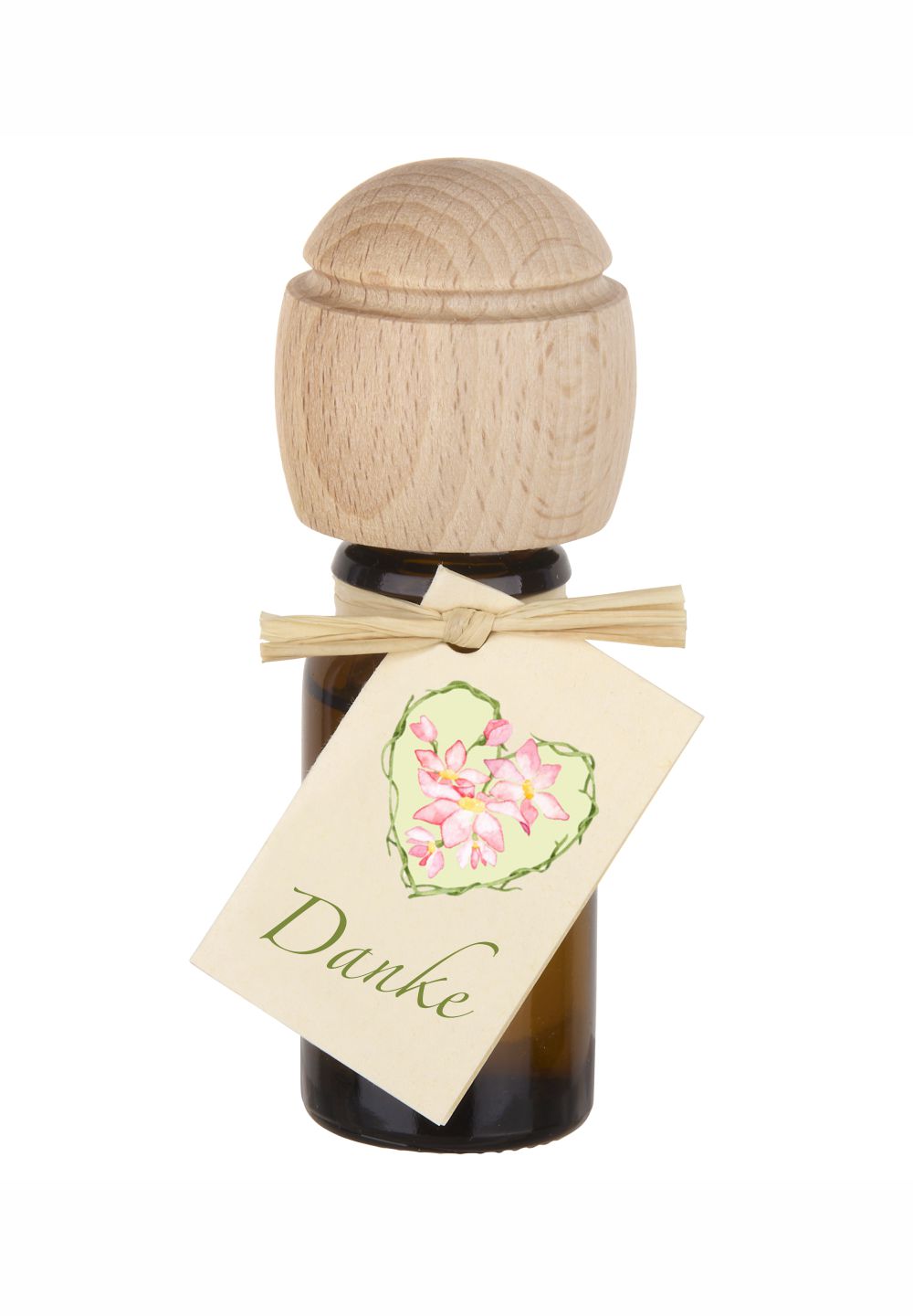 • 10 ml feinstes Duftöl in der braunen Glasflasche mit Verschluss aus Buchenholz welcher gleichzeitig als Duftträger dient.