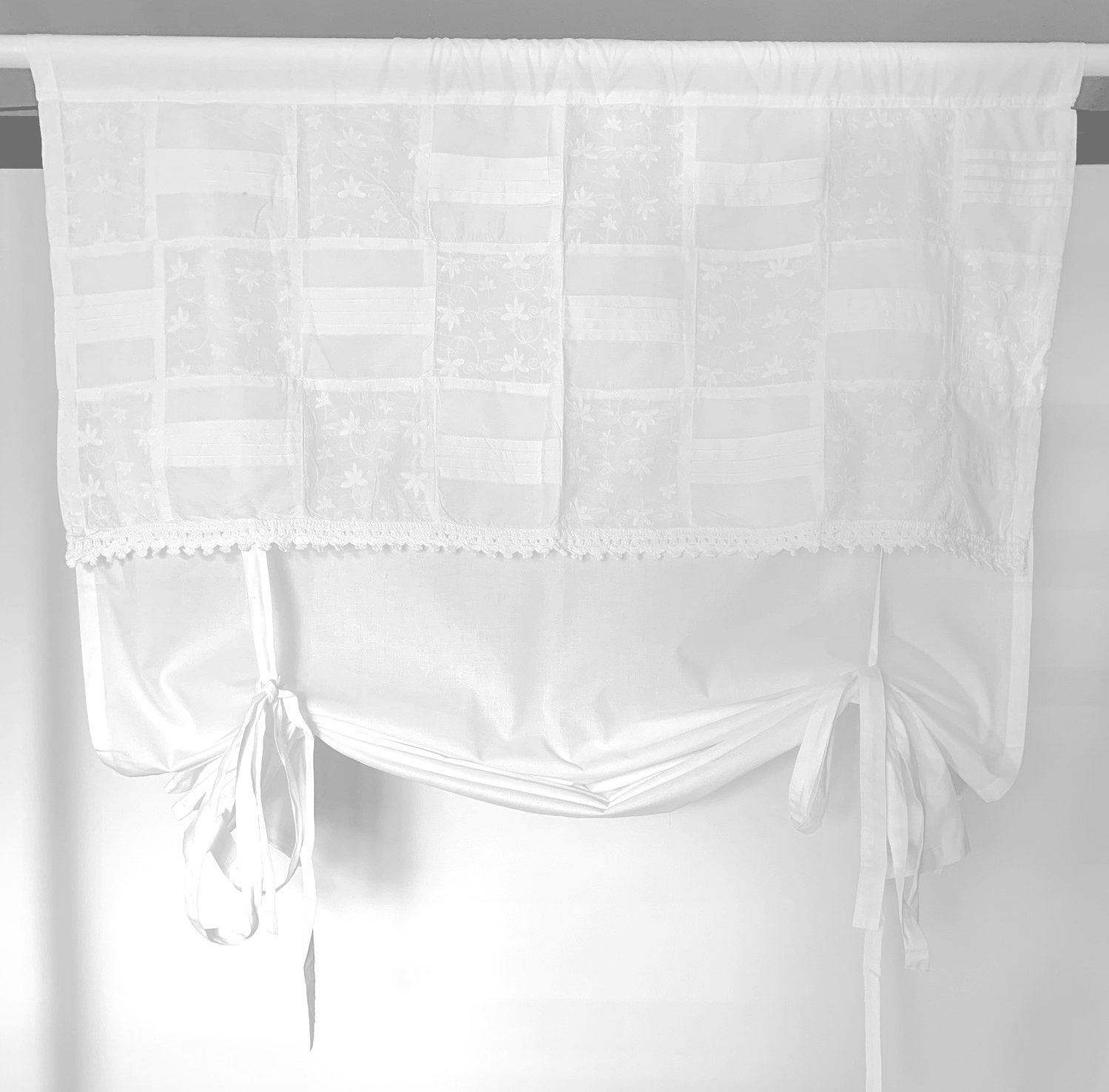 Raffrollo Blickdicht bestickt im Landhaus Stil Tunnelzug weiß H/B 160x100 cm