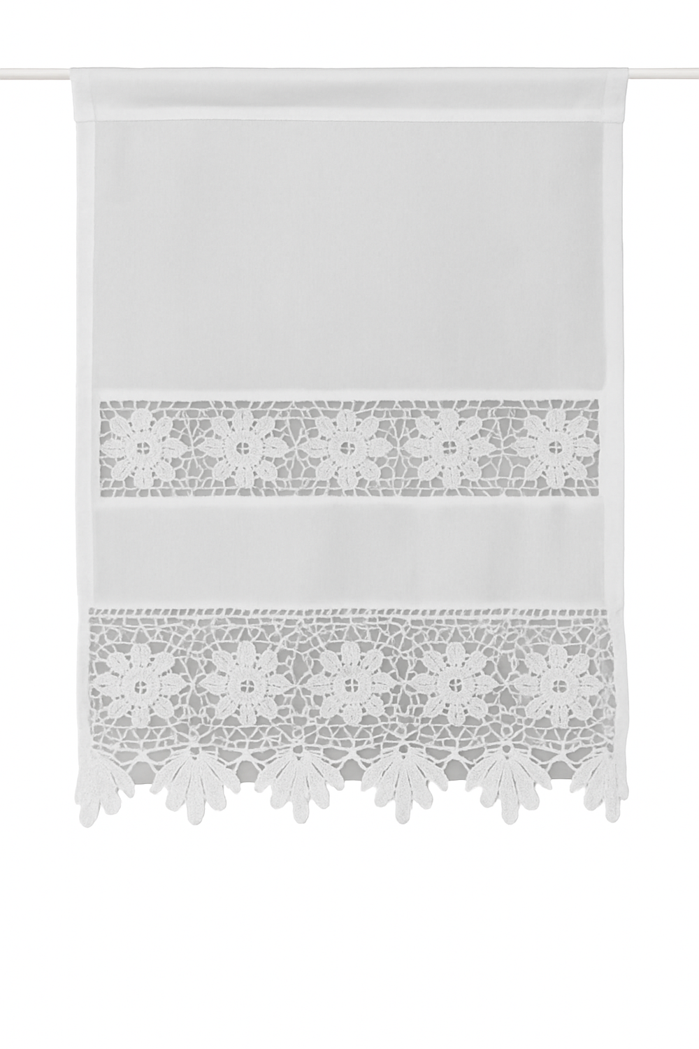 Romantische Gardine mit Häkelspitze im Vintage-Look, Weiß, 45×60 cm, 100% Baumwolle, halbtransparent