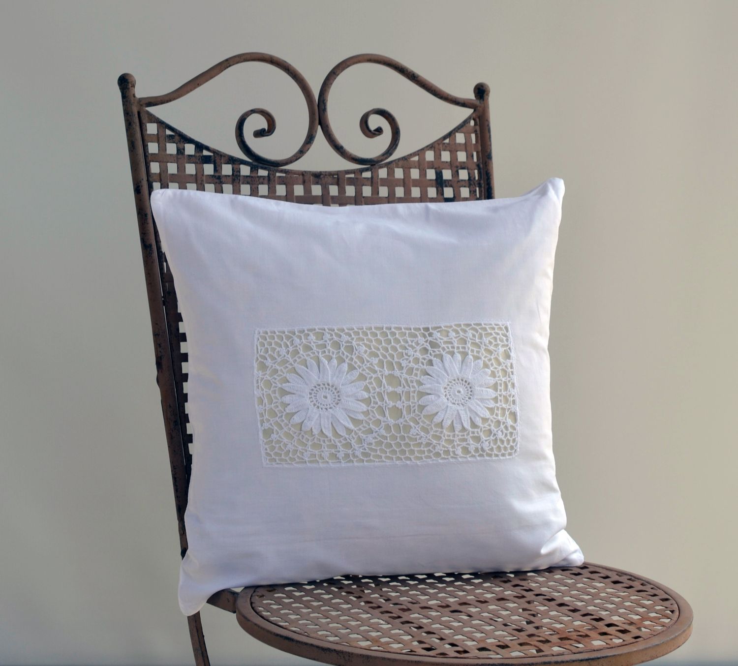 • Kissenhülle romantisch mit echter Häkel Spitze Handarbeit im Shabby Landhaus Look von Hossner.