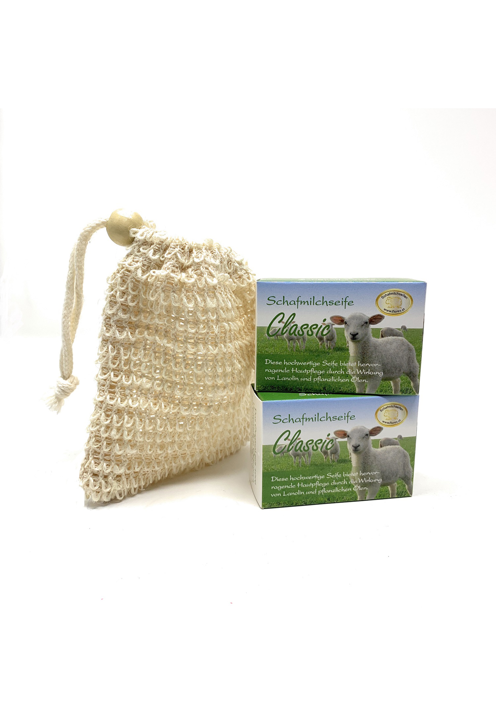 Schafmilch Classic mit Bio Schafmilch 2 Stück + Seifenbeutel Sisal 200 g