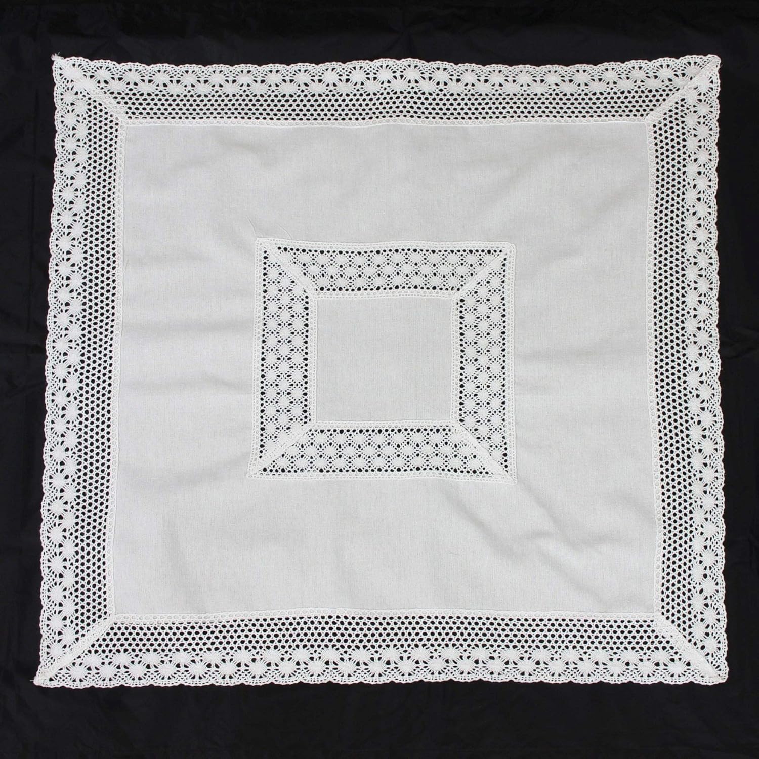 Tischdecke Mitteldecke bestickt mit Häkelkante Borte weiß 85x85 cm
