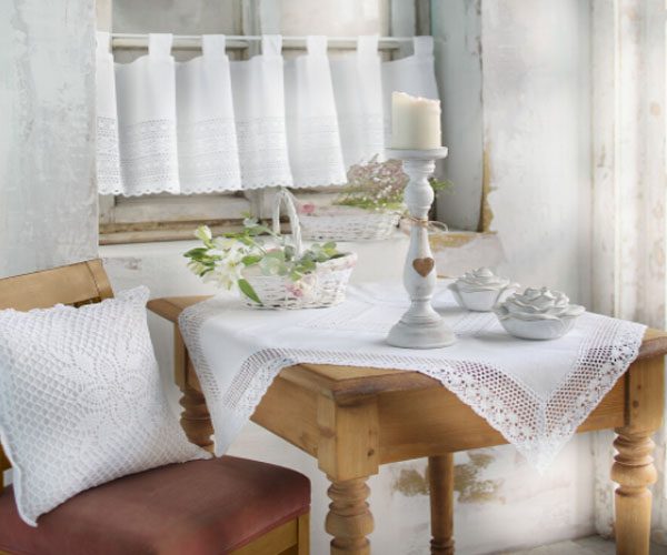• bestickte Tischdecke, Mitteldecke mit Spitzen Borte. Vielseitig einsetzbar ob Wohnzimmer, Esszimmer. Dekorieren Sie Ihren Tisch mit den schönen Mitteldecken.