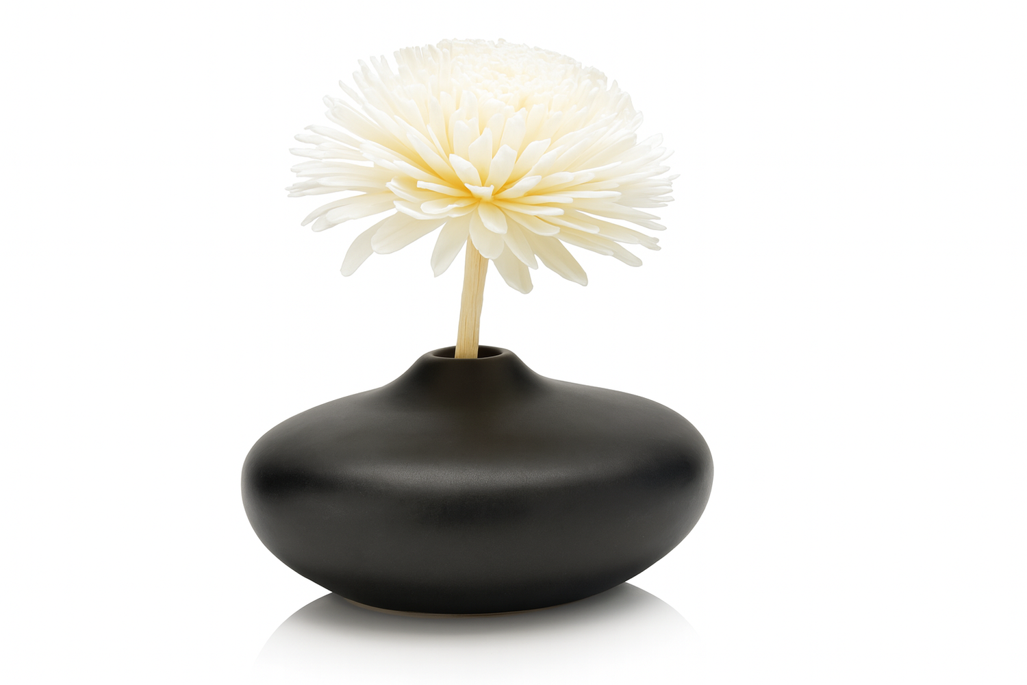 Die Keramikvase von Vogel Frei ist eine außergewöhnliche und dekorative Art, Ihr Zuhause zu beduften. Im Mittelpunkt steht eine elegante, matte schwarze Vase, die perfekt mit der zarten, handgefertigten Sola-Duftblume harmoniert.