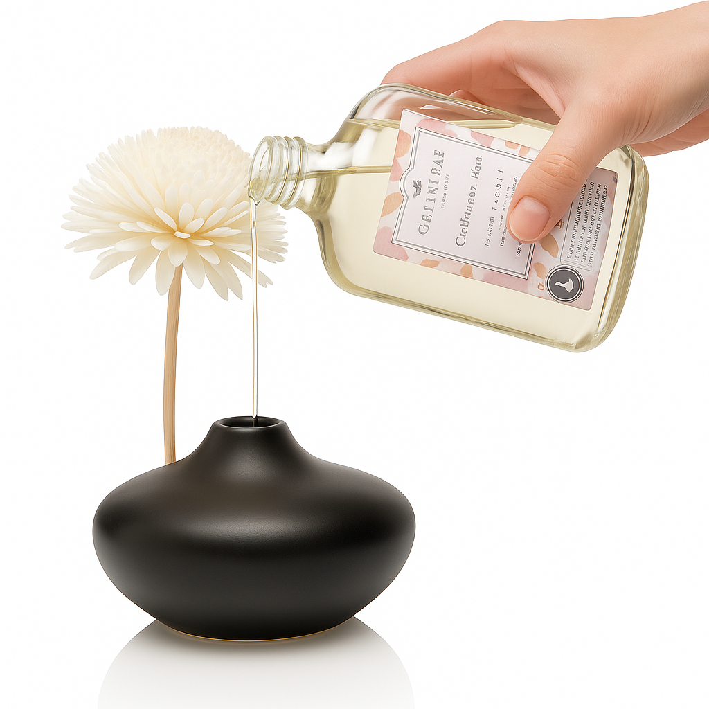 So wird die schwarze Vase mit der Sola-Duftblume nicht nur zum stilvollen Blickfang, sondern auch zu einer natürlichen, flammenlosen Duftquelle für jeden Raum.